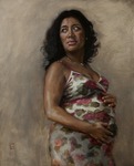 2011Portret van een hoogzwangere dame in bloemenjapon
