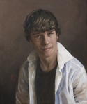 2017Vlot geschilderd portret met losse penseelstraak van een jongen in beperkt kleurenpalet